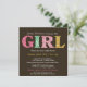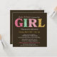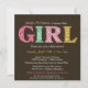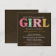 BABY! Convite de chá adorável com letras brilhantes coloridas em bloco de brilho.