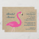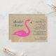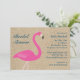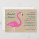 Um flamingo rosa fofo acentua este convite de chá de panela na praia em um fundo de areia de praia, tornando-o perfeito para o verão, à beira da piscina, tropical ou tema de destino. Este convite é mostrado no papel mate; no entanto, eu recomendo o papel linho ou feltro branco para uma sensação mais texturizada.