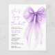 Elegante chá de panela amigável com orçamento, com uma bela aquarela de um arco de coquetes roxo, "Ela é casando" escrito em um guião púrpura chique, e seu nome e detalhes de seu evento em letras modernas.