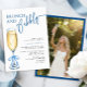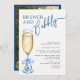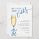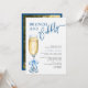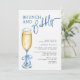 Celebre o estilo da noiva com este elegante chá de panela "Brunch and Bubble", com uma flauta de champanhe aquarela amarrada com uma fita azul macia. Perfeito para um evento com tema "Algo Azul", este design combina sofisticação lúdica com encanto moderno. Totalmente personalizável para o seu dia especial.