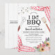 Convide os convidados para um Eu Faço Churrasco para celebrar o casal feliz com este convite de festa divertido e casual, perfeito para uma celebração no quintal! Este convite pode ser usado para um chá de panela com tema de churrasco, jantar de ensaio casual ou festa de noivado! O convite apresenta xadrez de piquenique vermelho, ferramentas de churrasco e um buquê de flores frescas da fazenda!