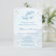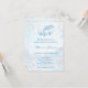Crie um convite exclusivo para todos os seus membros com um chá de panela de golfinho azul. O design de convite apresenta um golfinho metálico estilizado contra um fundo de ondas de oceano mudas enfeitado com rolhas elegantes. Personalize com os nomes do noivo e da noiva junto com os detalhes do chá de panela. Material adicional disponível com esta design também.