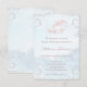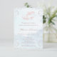 Crie um convite exclusivo para todos os seus membros com um chá de panela Dolphin Rosa. O design de convite apresenta um golfinho metálico estilizado contra um fundo de ondas de oceano mudas enfeitado com rolhas elegantes. Personalize com os nomes do noivo e da noiva junto com os detalhes do chá de panela. Material adicional disponível com esta design também.