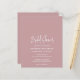Chá de panela rosa cor-de-rosa moderno, empoeirado, com um simples design com o título do evento em uma tipografia elegante e seus detalhes de evento em uma fonte minimalista sans serif. Este convite chic funciona bem com qualquer estilo de chá de panela.