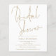 Um valor para o alternativo do ORÇAMENTO em tamanho menor de 4,5 x 5,6" de semirbrilho de 110 lbs, que é de espessura semelhante a um cartão postal (no entanto, não é adequado para uso como cartão postal). POR FAVOR, OBSERVE QUE HÁ UM convite por folha. Chá de panela de Script Dourado Elegante de Orçamento. Este design moderno para os seus Chás de panela Invites definiu um roteiro elegante para o Chá de panela no topo e personaliza facilmente com os seus detalhes abaixo. Mostrado em branco e ouro clássico, embora você também possa alterar as cores do texto e do plano de fundo em ambos os lados, se desejar através da opção Personalizar Mais.