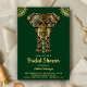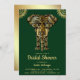 Encontrem seus hóspedes com este chá de panela tradicional com um elefante de ouro falso, maravilhosamente decorado, sobre um fundo verde. Basta adicionar os detalhes do seu evento neste modelo fácil de usar para torná-lo um convite de tipo único. Sacudir a placa para revelar uma textura falsa de folha de ouro na parte traseira da placa.