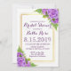 Este belo convite apresenta hipnagas roxas no florescimento de cheios, adornada com um belo verde e folhas de ferro, o seu detalhe de convite é bem enquadrado com uma tripla fronteira de folhas de ouro falsas. Perfeito para casamento de primavera, verão, ao ar livre ou jardim.