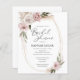 Este elegante chá de panela floral cor-de-rosa-boho é perfeito para um primavera elegante ou chá de panela de jardim de verão. O design apresenta uma bela aquarela branca e florais cor-de-rosa pincelados com grama-pampas, palmas secas e verde-eucalipto. Faça deste convite seu próprio, incluindo seus nomes e todos os detalhes do seu partido.
