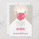 Noiva gráfica elegante com véu segurando um poste de chá de panela floral estilizado de rosas vermelhas. Edite este convite bonito com suas próprias palavras. © design exclusivo e arte gráfica por Sarah Trett. www.sarahtrett.com para www.mylittleedenweddings.com