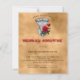 Um valor para o alternativo do ORÇAMENTO em tamanho menor de 4,5 x 5,6" de semirbrilho de 110 lbs, que é de espessura semelhante a um cartão postal (no entanto, não é adequado para uso como cartão postal). POR FAVOR, OBSERVE QUE HÁ UM convite por folha. GÓTICO ORÇAMENTAL Chá de panela Steampunk Corset. A era vitoriana e o gótico vibra com este espartilho e design de bicicleta rosa vermelha sobre um fundo dourado de efeito brilhante.