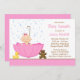 Esfregue a mãe para estar com este adorável convite para uma rapariga. Este convite para o feitiço cor-de-rosa apresenta um bebê bonito num guarda-chuva com gotas de chuva e um ursinho de pelúcia. Alguns elementos JDDigiDesign