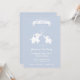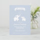 Um elefante-mãe e bebê são super fofos em branco contra um fundo pastel de cinza azul. O grande elefante tem um chá de água e corações vindo de seu porta-malas para um chá de fraldas! Perfeito para um chá de fraldas moderno e neutro. Você pode até mudar a cor do plano de fundo para o que quiser, clicando no botão "Personalizar!".