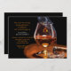 Convite de um homem para celebrar o aniversário, aprovação no exame da Ordem dos Advogados, despedida de solteiro e mais. O cartão apresenta fumaça saindo de um charuto aceso ao lado de um copo de conhaque ou brandy.