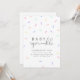 Convide os entes queridos a juntarem-se a vós para celebrarem o vosso pequeno a caminho com o nosso convite minimalista à aspersão de bebês, que inclui borrifadas de pastel arco-íris e texto preto suave.