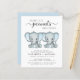 Um convite para casal de gêmeos bonitinho e econômico com "Dois Pequenos Amendoins Doce Estão A Caminho" escrito em tipografia moderna de cinza mole e um roteiro de na moda, e duas aquarelas azuis pastéis de elefantes bebês. Personalize os nomes dos futuros pais e os detalhes do chá em simples tipografia de cinzas.
