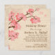 Branch Cherry floresce em um convite de Chá de casamento de fundo bege claro pálido.