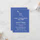 Convite para chá de casamento noturno do casal na moda, feito em azul, com texto branco personalizado pronto para personalizar. Um jogo de dedos tac branco usando corações, no topo do convite, tem uma seta branca passando por ele.