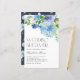 Convide convidados para o seu evento com este convite personalizável para estoque de chás de casamento florais. ele apresenta buquê de cor d'água de hífenes azuis, rosas brancas e sotaques verdes. Personalize este convite de chá de casamento hydrangea adicionando nome, hora, data e outros detalhes do evento. Este convite para chás de casamento botânicos é perfeito para chás de casamento da primavera, chás casamentos no inverno e chás de casamento de jardim.