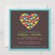Um coração de corações design em tons brilhantes de turquesa, limão, laranja e rosa quente - faz um convite para chás de casamento divertidos e alegres. Disponível em combinações de cores variadas e com cartazes e adesivos correspondentes também!
