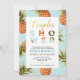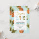Este convite de chá de casamento único apresenta um padrão de abacaxi tropical e tipografia de ouro. Perfeito para sua festa de verão!