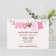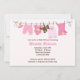 Este convite para Chás de fraldas tem roupas cor-de-rosa para bebês e um ursinho de peluche e cobertor de bebê numa linha de roupa. Este convite ao chá moderno e elegante é perfeito para qualquer mãe ser. Alguns elementos desta placa © BabyStar Design
