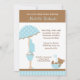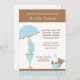 Este convite para Chás de fraldas azul giro apresenta uma mulher grávida, uma bolinhas de silhueta, um guarda-chuva e um ursinho de pelúcia giro, e está apenas esperando para ser personalizada com seus detalhes. Este convite ao chá de fraldas moderno e elegante é perfeito para qualquer mãe ser. © Cocoa Studio