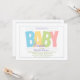 Um convite unissexo com a palavra "BABY" em cores pastel. Adequado para chás, gêmeos e múltiplos desconhecidos. O cartão é fácil de personalizar com seu texto, fonte, cor da fonte e escolha de seis tipos de papel. Não exatamente o que você está procurando? Todos os nossos produtos podem ser personalizados para atender às suas necessidades sem custos adicionais. Basta entrar em contato conosco em heartfelthelper@gmail.com. Coordenar produtos disponíveis: