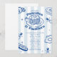 Tema do chá de fraldas Pancakes e Pacificadores com rabisco azul inspirado em ilustrações de panquecas, rosquinhas, eclair e croissants sobre fundo listrado azul.