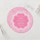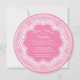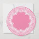 Bonito convite para chás de fraldas para um chá de fraldas para meninas com um quadro branco de rendas fino, colocado em um círculo de recorte redondo rosa escuro de fundo. Sacudir nosso convite para Chás de fraldas moderno e divertido para ver uma correspondência de volta para um toque especial extra.