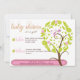 Este convite para o chá de fraldas de preciosos é uma maneira maravilhosa de convidar seus convidados para comemorar sua nova chegada. Esta design tem um fundo branco com uma árvore esbranquiçada e esbranquiçada divertida com flores cor-de-rosa e um pássaro rosa giro do lado direito. Os detalhes do seu partido vão para o lado esquerdo e são completamente personalizáveis. Basta adicionar os detalhes do seu Chá e você está pronto para ir!