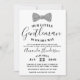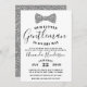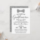 Este Convite para Chás de fraldas de Cavalheiros apresenta uma gravata Faux Silver Glitter arco. Este convite é perfeito para qualquer chá de fraldas de gravata, cavalheiro ou arco, O design elegante é perfeito para dar o tom de uma ocasião de gravata negra.