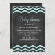 Turquesa chevrons em um fundo de quadro ilustrado, sotaque este convite de chá de fraldas de tendência.