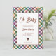 Bem-vindos ao seu pequeno com calor e estilo usando os nossos convites para o chá de bebê 'Oh Baby'. Esses convites combinam sem esforço o encanto de um fundo gingham rústico com uma paleta de cores de queda contemporânea de verde, marrom, roxo e pêssego. Projetados em torno de uma fofa e casual tipografia, estes convites exudem uma vibração moderna, simples e moderna. Além disso, são neutros em termos de gênero, perfeitos para os pais manterem o gênero do seu bebê como uma surpresa. Use o botão azul "Personalizar" para adicionar suas informações. Escolha entre impressões de alta qualidade para enviar por e-mail ou fique verde com nossa opção de convite digital ecologicamente amigável. Defina o tom para o seu chá de fraldas com estas placas maravilhosamente convidativas. Arte original do Ana Garza/Kardz Studio. Se tiver alguma pergunta, por favor contacte-me através do bate-papo Zazzle.
