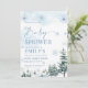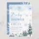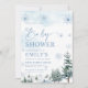 Chá de fraldas da Wonderland de inverno com pinheiros azuis com flocos de neve