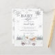 Este belo convite para chás de fraldas de florestas de inverno é perfeito para um bebê que está frio fora do tema chá. A design apresenta lindos bichos-da-água, de cor d'água, em um caminhão de fazenda cercado por montanhas e flocos de neve que a futura mãe e os convidados certamente adorarão. Personalize com todos os detalhes do seu chá de fraldas.