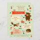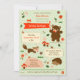 Este belo convite é ideal para celebrar um Chá de fraldas com tema de floresta, outono ou inverno. Ele contém caracteres de criatura que contam todos os detalhes da festa. Pequenas flores, folhas, insetos e cogumelos adornam a cena. O adorável design unisex é excelente para uma futura mãe. A paleta de cores é quente e o fundo tem um padrão de gingham. Adicione a sua própria redação.