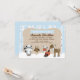 Animais das florestas de inverno, incluindo veados, guaxinins, raposa e coruja. Estilo Whimsical com todos os animais vestindo chapéus e cachecóis de inverno em um fundo de burlap, com neve, pássaros e uma cor azul macia. A fonte "CHÁ DE FRALDAS FOR" no banner na parte superior NÃO é editável. Todos os outros textos podem ser personalizados e você pode adicionar texto adicional na parte traseira ou sair como o azul correspondente.