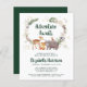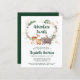 Convite à apresentação de chás de fraldas de inverno rústico, de fácil orçamento, que inclui ilustrações em aquarelas de animais da floresta, florais, estrelas verdes e douradas e flocos de neve. "Aguardam Aventura" e o nome da futura mãe está escrito em um roteiro verde de caçador negro. Personalize facilmente os detalhes do chá.