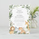 Convide o seu convidado com os nossos elegantes e modernos animais safari. O convite para chás de fraldas contém animais verde eucalipto garland e aquarelas safari. Personalize com seus detalhes de chá de fraldas em layout simples e fonte elegante de estilo manuscrito.