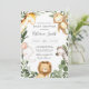 Convide o seu convidado com os nossos elegantes e modernos animais de safari para bebês. O convite para chás de fraldas inclui animais verdes eucaliptos garland e aquarelas safari. Personalize com seus detalhes de chá de fraldas em layout simples e fonte elegante de estilo manuscrito.