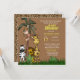 A selva foi um convite para Chá de fraldas com uma zebra, leão, girafa, macaco e bananeira. O fundo castanho escuro é excelente para chás de fraldas com tema safari.