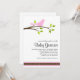 Um pássaro rosa bonito para um chá de fraldas! As listras e bolinhas clássicas adoram este convite para chás cor-de-rosa e castanho.