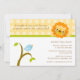 Este convite para a festa do chá de fraldas 5x7 tem um pássaro giro em um galho e um leão espreitando e sorrindo. Há bolinhas amarelas no fundo. Você pode personalizar isso facilmente com suas informações de festa. Isso pode ser usado para uma garota ou uma festa de menino. Estúdio de Cacau