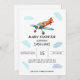 Chá de fraldas com design de avião a aquarela misturado ao fundo do céu nuvem. personalize-o ao seu gosto.