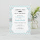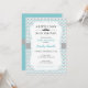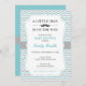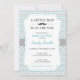 Convite para Chás de fraldas moderno com um fundo de turquesa e padrão de fevron de cinza e um gráfico de bigode de cinza escura. Perfeito para um "Homem Pequeno" ou "Bacia do bigode", Chá de fraldas temático para um menino.