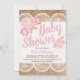 Convide seus amigos para um chá de fraldas com este maravilhoso convite para chás de fraldas de chique apresentando um fundo de burlap e localidade com lindas flores rosa de aquarela.