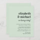 Um convite de chá de fraldas verde, minimamente moderno e amigável em termos de orçamento, com os nomes dos pais e "estão tendo um bebê!" numa mistura de tipografia ousada de tendências e um roteiro de na moda, e os detalhes do chá em uma simples tipografia. Pode especificar o sexo do bebê, se desejado (por exemplo, "está a ter um bebê!").
