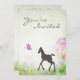Bonito Foal, Borboleta e Flores, Convite para Chás de fraldas de Cavalo para Meninas. Excelente Convide para Chás de fraldas de Primavera e Verão.