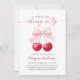Celebre a chegada de um pequeno com esse convite de chá de fraldas de cereja elegante.