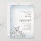 Bem-vindos convidados para uma celebração mágica de inverno com este convite para chás de fraldas da floresta. Uma lavagem aquosa de cinza azul macia cria um pano de fundo gelado, levemente poeirado com flocos de neve no topo. No canto, um belo coelhinho e um doce coelho são ilustrados num delicado estilo de esboço de carvão, aninhados entre os galhos de pinheiro fosco. Os cristais de neve espumantes derivam suavemente através da design, enquanto uma área de texto editável no centro facilita a adição de seus detalhes. Uma escolha encantadora para uma reunião acolhedora e inspirada na natureza.